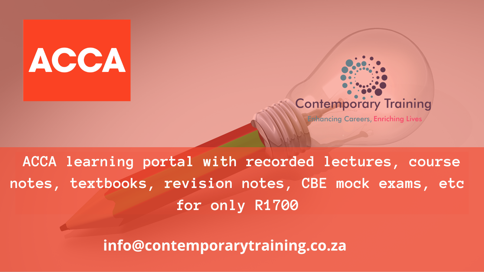 ACCA is the global body for professional accountants. ACCA full qualification is ranked at level 8 under the SAQA National Qualifications Framework (NQF 8). The ACCA Qualification is designed to provide the accounting knowledge, skills and professional values which will deliver finance professionals who are capable of building successful careers across all sectors, whether they are working in the public or private sectors, practicing in accounting firms, or pursuing a career in business. ACCA is the ideal course for anyone who wants to work in finance, taxation, auditing or even general accounting. The course is divided into two, the Fundamentals (F1-F9) and the Professional Level (P1-P7).